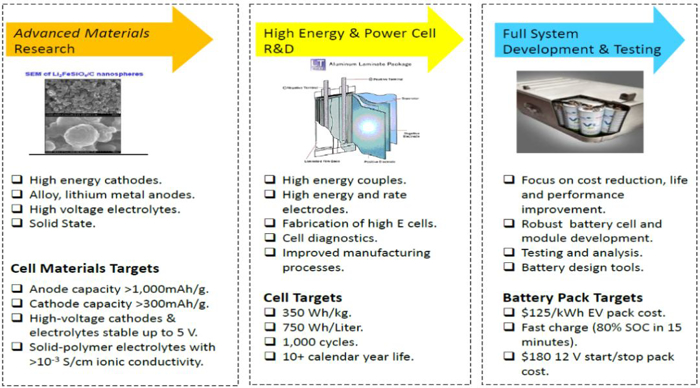 主导美国电池研发的机构之一是USABC,United States Advanced Battery Consortium(美国先进电池联盟)其任务是开发电化学能量储存技术,以支持燃料电池、混合动力和电动汽车的商业化,是美国能源部重要的合作伙伴。