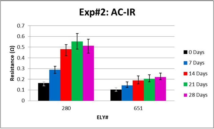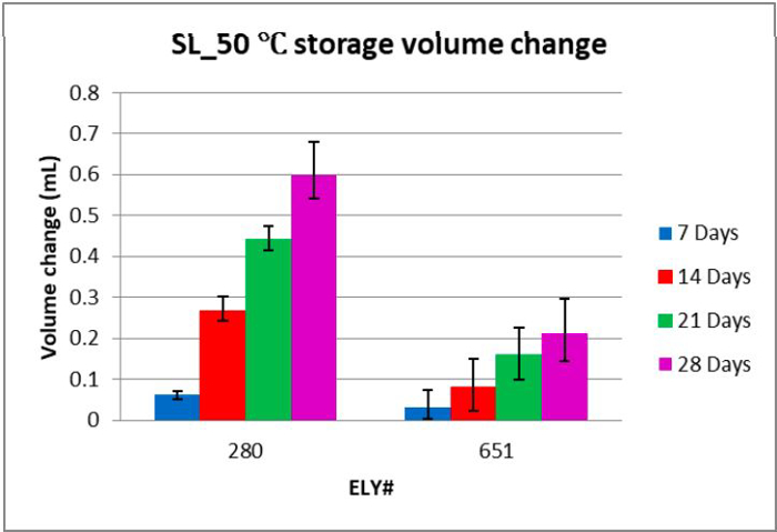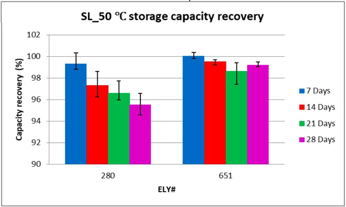 由以上对比数据我们可以看到使用新的电解液添加剂(代号280-->651)可以显著减少电池的高温产气和提高存储容量的恢复率。