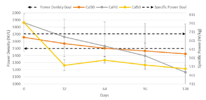 *日历寿命的能量和HPPCG功率测试的衰减情况