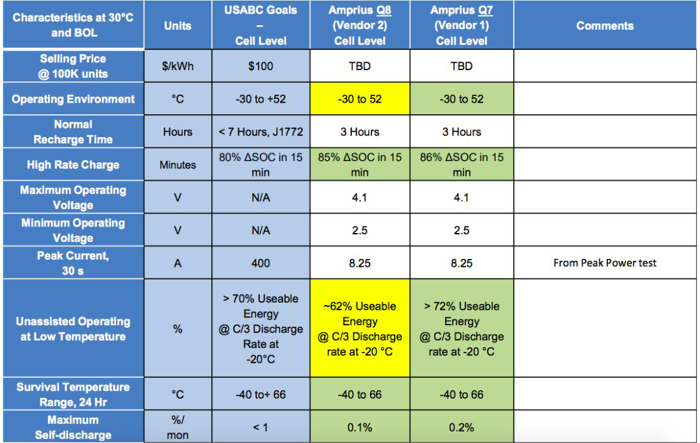 下面就是USABC在锂电池材料,单体和模组上的开发目标摘要。