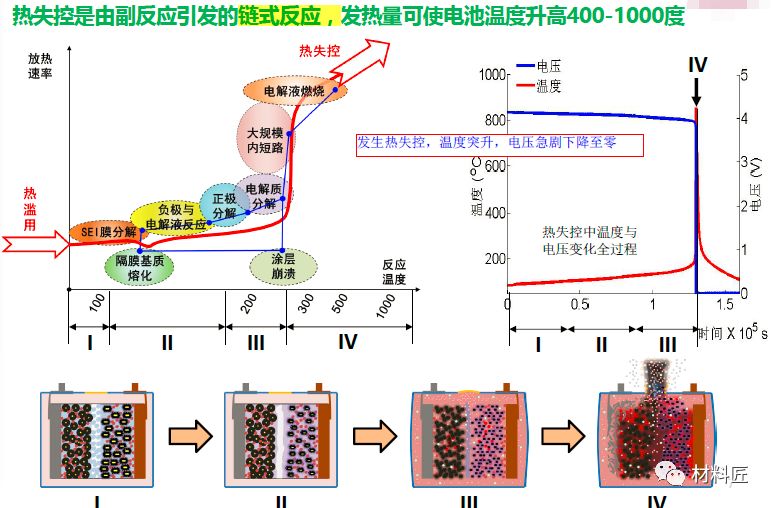 电池温度达到200℃之上时,正极材料分解,释放出大量热和气体,持续升温。250-350℃嵌锂态负极开始与电解液发生反应。