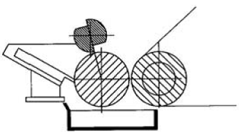 刮刀涂布:工作原理如图1所示,箔基材经过涂布辊并直接与浆料料槽接触,过量的浆料涂在箔基材上,在基材通过涂辊与刮刀之间时,刮刀与基材之间的间隙决定了涂层厚度,同时将多余的浆料刮掉回流,并由此在基材表面形成一层均匀的涂层。 刮刀类型主要逗号刮刀。逗号刮刀是涂布头中的关键部件之一,一般在圆辊表面沿母线加工成形似逗号的刃口,这种刮刀具有高的强度和硬度,易于控制涂布量和涂布精度,适用于高固含量和高黏度的浆料。