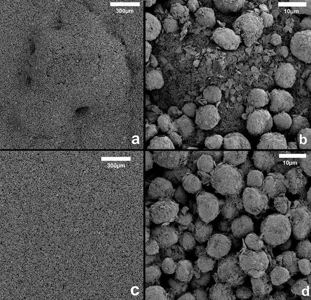 极片表面小颗粒放大形貌(a和b):导电剂的团聚体,没有完全分散