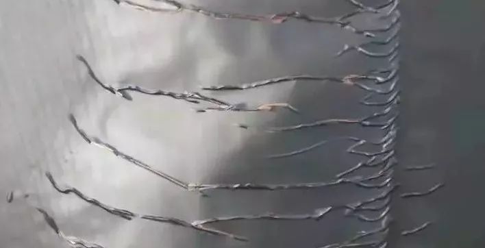 正极极片圆盘分切时,由于张力控制不稳定导致二次切削形成箔材毛刺