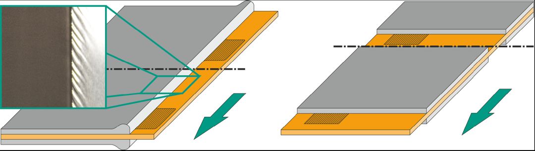 产生厚边的原因是浆料表面张力的驱使,使浆料向极片边缘无涂覆处迁移,烘干后形成厚边