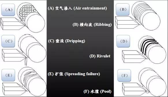 【16】其它常见涂布缺陷有:空气渗入、横向波、垂流、Rivulet、扩张、水漥等
