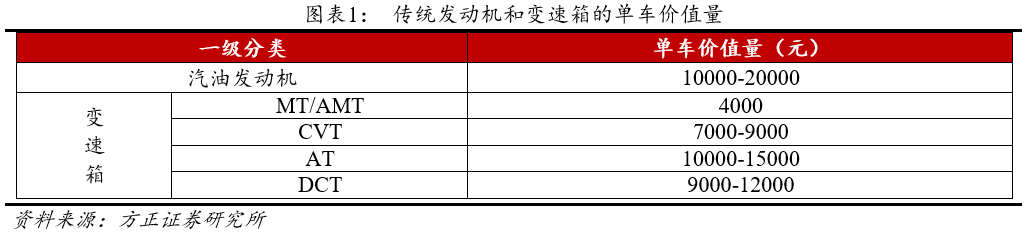 这里需要解释的是,作为传统汽车核心零部件——发动机,它在国内基本没有独立出来,是由整车厂制造,所以这里我们退而求其次的选择了变速箱的相关标的。