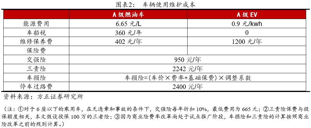使用维护成本是指车辆的能源费用、车船税、维修保养费、保险费、停车过路费等,详情列示如下。