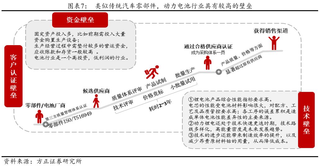 和传统汽车零部件行业相似,动力电池行业同样也存在较高的技术壁垒。