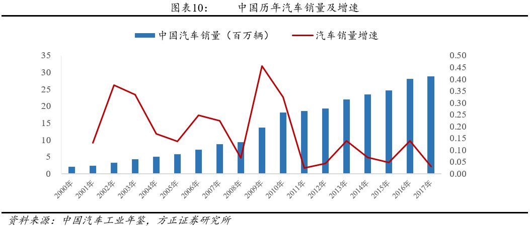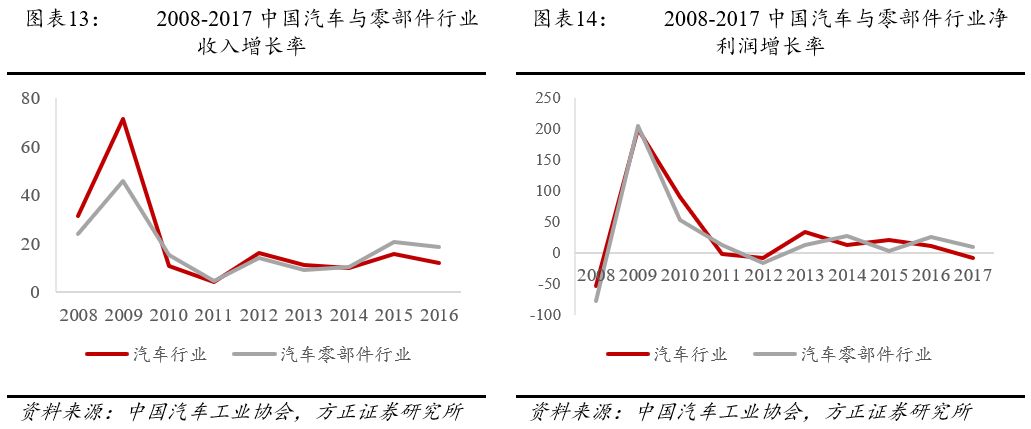 中国汽车行业现状:汽车行业高速增长,过去十年销量的复合增速为12.6%,且盈利水平普遍比较好,整车板块平均利润十年复合增速在25%以上。