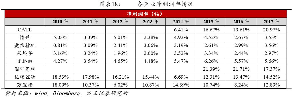 4.1.3未来动力电池行业净利率中枢可能在8%-10%左右