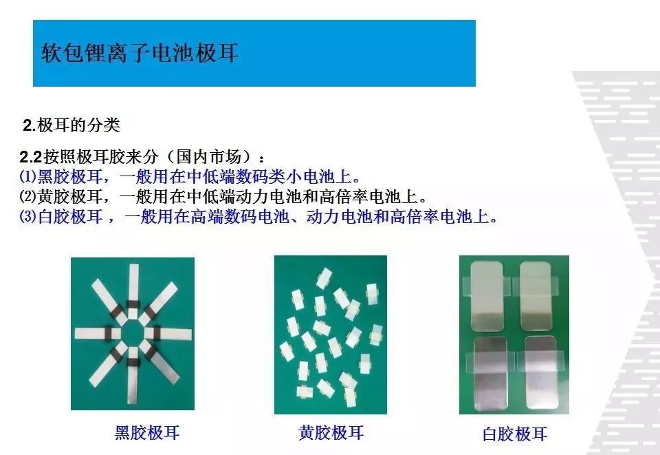 ⑶白胶极耳:一般用在高端数码电池、动力电池和高倍率电池上。
