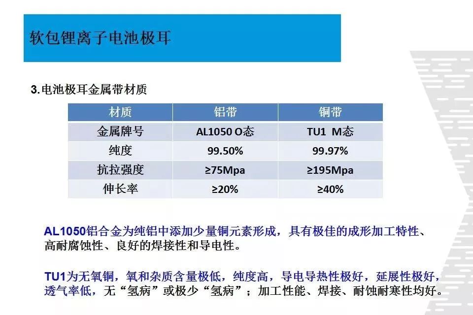 动力铜镀镍极耳:铜保证导电性;经过表面处理后镍起到防止铜氧化的作用,如果要保证铜镀镍极耳的焊锡性,还需要对极耳的表面钝化膜进行二次处理。市场上一些公司的极耳不进行二次处理也能勉强上锡,但极耳的耐电液腐蚀性差些。