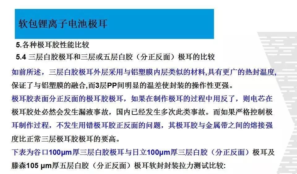 5.4 三层白胶极耳和三层或五层白胶(分正反面)极耳的比较