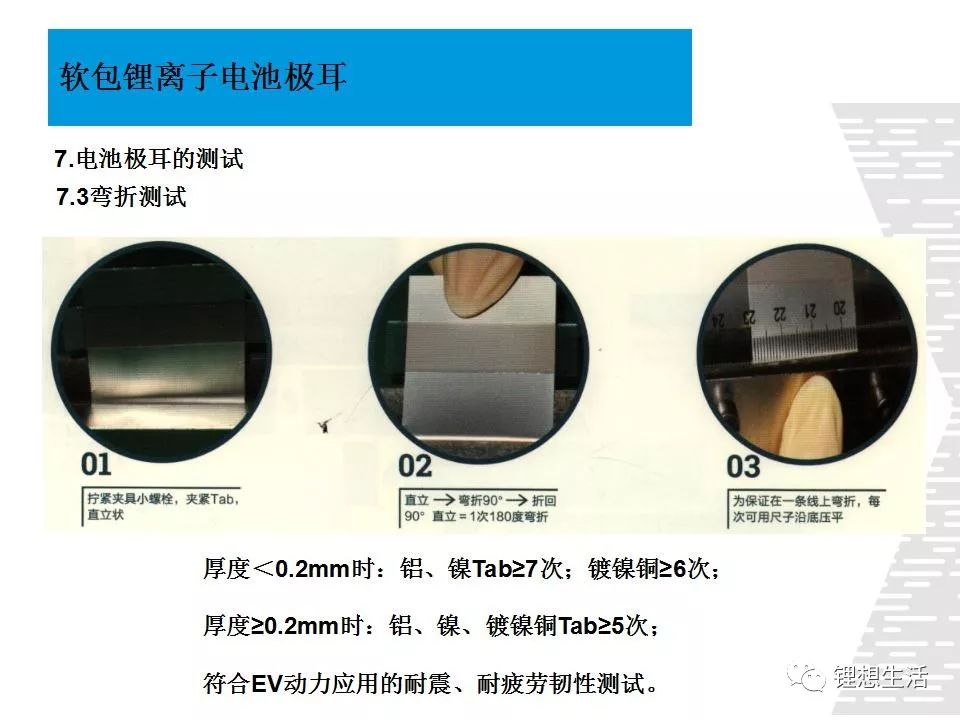厚度<0.2mm时:铝、镍Tab≥7次;镀镍铜≥6次;