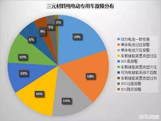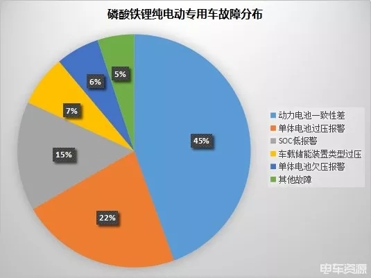 动力电池一致性差、单体电池过压报警和SOC低报警这三大故障占磷酸铁锂纯电动专用车故障量的81%。