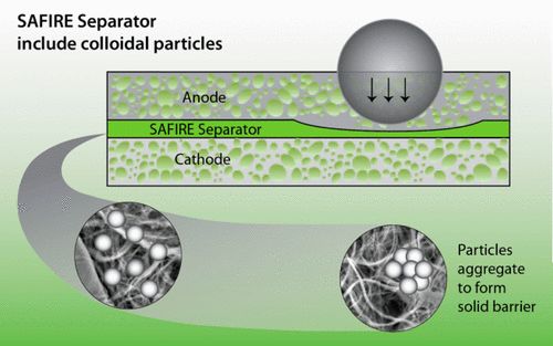 锂电池电解液基本上是有机碳酸酯类物质,是一类易燃物。常用电解质盐六氟磷酸锂(LiPF6)存在热分解放热反应。因此提高电解液的安全性对动力锂离子电池的安全性控制至关重要。LiPF6的热稳定性是影响电解液热稳定的主要因素,因此目前主要改善方法是采用热稳定性更好的锂盐。但由于电解液本身分解的反应热十分小,对电池安全性能影响十分有限。对电池安全性影响更大的是其易燃性。降低电解液可燃性的途径主要是采用阻燃添加剂,但是这些阻燃剂往往会对锂电池的电化学性能产生严重的影响,因此难以在实际中应用。Hongfa Xiang等人[6]采用磷酸三甲酯(TMP)为溶剂,双氟磺酰亚胺锂为溶质,研发出一种新型高浓度不燃电解液。在高浓度(5mol/L)下,电解液中大部分TMP溶剂分子和Li+配位,形成特殊的溶剂化结构,这使得溶剂分子与负极之间的副反应减少,大大提高了电池的安全性。美国加州大学圣迭戈分校的Yu Qiao团队[7]采用胶囊封装的方式将阻燃剂二苄胺(DBA)储存在微型胶囊里,分散在电解液中,正常状态下不会对锂电池的性能产生影响,当电池受到挤压等外力破坏时,胶囊中的阻燃剂就会被释放出来,“毒化”电池使电池失效,从而避免热失控的发生。之后,他们团队又采用同样的技术,将乙二醇和乙二胺作为阻燃剂,封装后装入锂电池,能够显著降低锂电池热失控的风险[8]。Prof. Atsuo Yamada等人[9]采用高浓度NaN(SO2F)2或者LiN(SO2F)2作为锂盐,添加常见的阻燃剂磷酸三甲酯TMP,制备的电解液能够显著提高锂电池的热稳定性,而且阻燃剂的添加并没有对锂电池的循环性能产生影响。针对动力电池在使用中可能面临冲击的情况,Gabriel M. Veith等人[10]试图在根源上避免外力导致的锂电池内短路发生,设计了一种具有剪切增稠特性的电解液(图3),该电解液利用非牛顿流体的特性,在正常状态下,电解液呈现液体状态,在遭遇突然的冲击后则会呈现固体状态,变得异常坚固,甚至能够达到防弹的效果,从而从根源上避免了在动力电池发生碰撞时电池内短路导致热失控的风险。