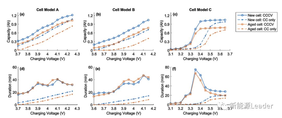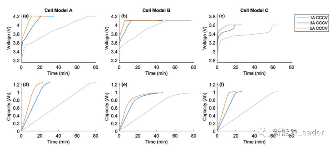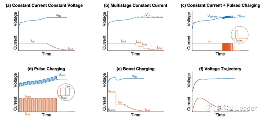 所谓的加速充电模式是在CCCV充电模式的基础上增加了一个大电流的CC或者恒功率充电过程,从而达到降低充电时间的目的(如下图e所示),有研究表明加速充电模式能够有效的提升锂离子电池的充电效率,同时又不会对锂离子电池的循环寿命产生显著的影响。