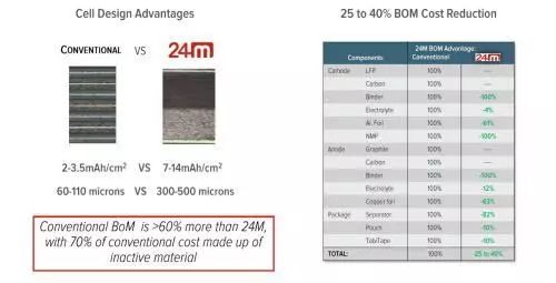 根据电池研发商24M Technologies公司表示(24M Technologies是一家半固态电池研发商。该公司目前致力于研发半固态锂离子电池的研发和生产。),其技术是新电池的底部,泥浆的厚度可以300 - 500μm,这是大约五倍,现有的电池(60 - 110μm)。