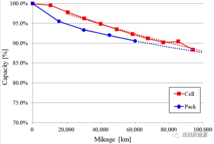 图17. 电池和pack寿命循环测试容量衰减对比。