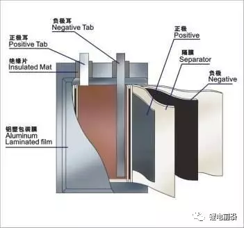 软包电池的基本结构与圆柱和方形是类似的,都是正极、负极、隔膜、绝缘材料、正负极极耳和壳体,只是软包电池的课题是铝塑膜。