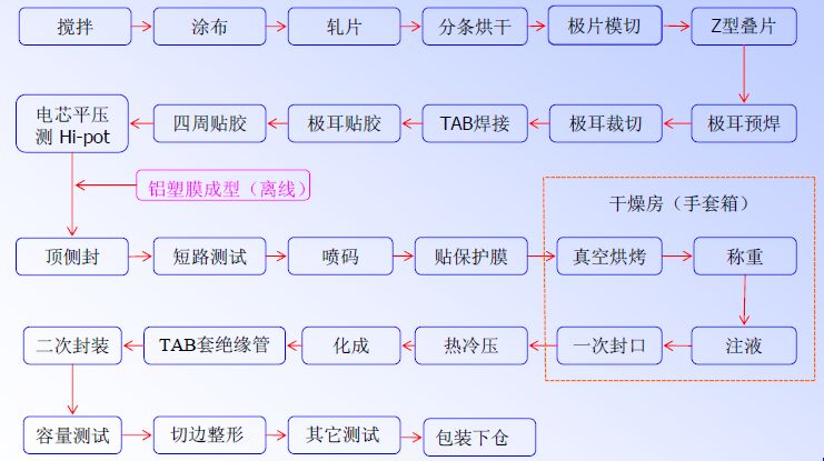 由于外壳是铝塑膜,其生产工艺在一些方面与其它两类商用电池不同。比如铝塑膜的封装工艺,比如化成过程中的整形工艺等。