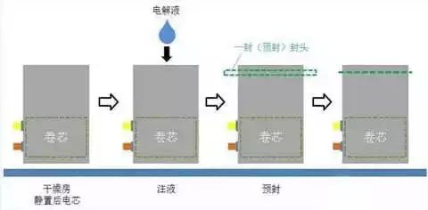 注液、预封工序,软包电芯在顶侧封之后,需要做X-ray检查其卷芯的平行度,然后就进干燥房除水气去了。在干燥房静置若干时间时候,就进入了注液与预封工序。