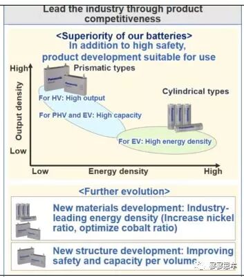 松下在电池领域积累深厚。1931年,松下开始涉足电池领域,先后研发并量产干电池、铅酸蓄电池、镍铬电池、一次锂电池、镍氢电池以及锂离子电池。1994年,松下就已开发出锂离子电池,2010年,又成功开发出车用方形锂离子电池。