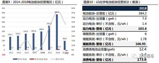 动力电池高速增长,预计2020年大规模放量:2018年LG动力电池出货量约7.4gwh,占全球市场7.6%,占海外市场23%份额,20年大众等核心客户起量,公司市占率将迅速提升。