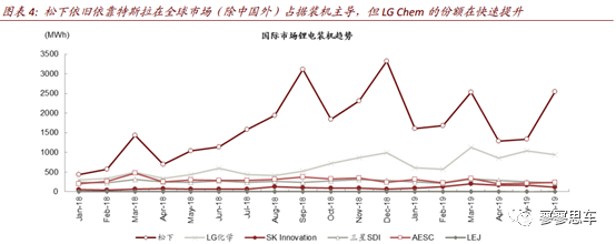 特斯拉业务增长受阻新客户拓展较慢,海外份额面临LG Chem的快速追赶。松下在全球新能源车浪潮中受益于特斯拉的崛起,但同样因Gigafactory产能的瓶颈增长受阻。同时在其它客群上,仅开拓丰田这一核心客户,在德系及美系车企上均无较好建树,也无欧洲配套的产能,显著落后于LG Chem、SKI及宁德时代。