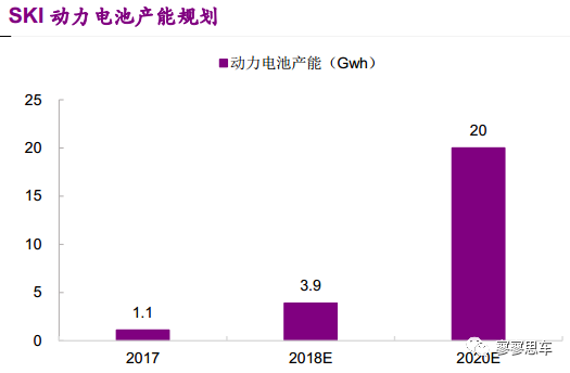 根据SKI的公告,2018年公司计划新建2.8Gwh产能的工厂,使得总产能达到3.9Gwh。该新建产能主要是为起亚NiroEV和SoulEV供应电池。此外,公司还在匈牙利及中国常州计划新建产能,2020年产能目标为20Gwh。