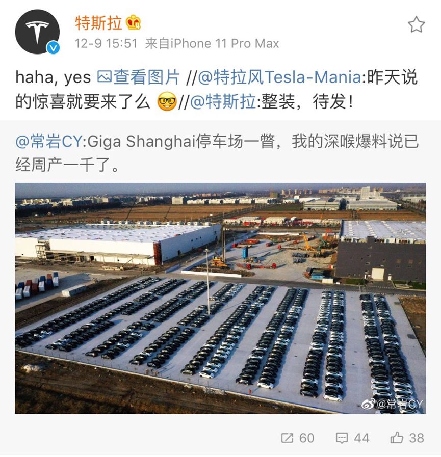 随着特斯拉上海工厂国产化速度的加快,特斯拉和松下的联盟正在瓦解,瓦解这个联盟的棋子是LG化学。上周一,有媒体在微博曝料,上海特斯拉超级工厂的周产能达到1000台,特斯拉官方微博转发了这条微博,虽然并没有承认什么,但是我们都懂得,周产1000台大概率是真的。