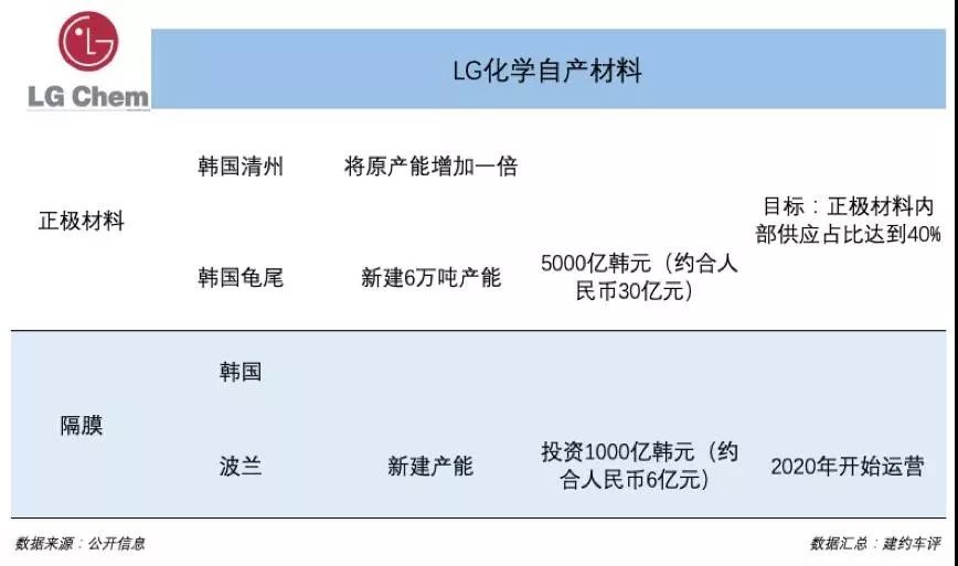 2019年10月份全球动力电池市场份额公布的时候,韩国媒体做了一张粗糙的表格,恶狠狠地把中国企业奚落了一番。图中,韩国人把自己国家的三个企业都标注出来了,其中第3名是LG化学,第5名是三星SDI,第9名是SK创新。其中,LG化学进入到全球前三名。韩国人上一次进入前三名还是在2015年,但是后来中国一纸“白名单”将韩国人拒之门外。眼看着全球最大的新能源市场正在爆发热潮,韩国人却无能为力。2019年随着“白名单”的放开,韩国人重获角逐中国市场的机会,再加上下半年补贴退坡导致的中国新能源市场下滑。这一进一退之间,刺激了韩国人压抑已久的神经。韩国人已经迫不及待地想要宣示自己在动力电池领域的全球地位。韩国人不无嘲讽的表示,根据SNE研究的报告,2019年10月,全球EV电池装机量与去年同期相比,下降了25.7%,但是韩国的三家公司均实现了大幅度的正增长。(其中排在第8名的中航锂电也实现了大幅增长,但是韩国人视为杂音,选择无视。)韩国《中央日报》在12月的一篇报道中,引用一位行业高管的话称,由于中国政府减少了新能源补贴,苦苦挣扎的电池厂商们和电动汽车制造商们正在被清理出市场。三家韩国企业中,LG化学的电池业务发展最好。其在2019年1月-11月的市场份额已经超越比亚迪,上升到了全球第三。LG化学的高管在接受采访时表示,预计2019年汽车动力电池的销售额为5万亿韩元(约合人民币301亿元),2020年有望达到10万亿韩元(约合人民币602亿元)。韩国现代证券分析师更是激进的表示,这一成绩将会超过宁德时代,成为全球最大的动力电池制造商。2020年1月7日,国产特斯拉正式对车主交付,首批交付车辆仍然使用松下电池。但在年后的3月份,国产特斯拉将会逐步搭载LG化学生产的圆柱电池。2019年1月,LG化学投资1.2万亿韩元(约合10.25亿美元)扩大其南京新港的圆柱电池工厂,此举正是为特斯拉供货做准备。2018年10月23日,总投资20亿美元的南京LG化学滨江电池工厂开始动工,远期目标产能为32 GWh。2019年11月,该工厂已经开始试生产,一期产能合计6GWh,计划于次月启动量产。新港工厂供货上海特斯拉工厂,滨江工厂向中国市场其他主机厂供应软包电池。在美国市场,LG化学与通用汽车成立了合资公司。通用汽车早在2009年就选择LG化学作为合作伙伴,为雪佛兰Volt提供电池,是LG化学从消费电池转向动力电池的重要扶持者。2019年12月5日,通用汽车与LG化学宣布,将联合投资23亿美元在美国建立一家电动汽车电池合资企业,双方分别持有50%股份。合资公司将新建电池产能将超过30GWh,于2020年年中开工建设。2021年秋,通用发布的纯电动皮卡即可搭载该电池厂的电池。LG化学是欧洲动力电池市场最早的开拓者之一,其波兰弗罗茨瓦夫工厂于2017年7月建成。当地除了LG化学,还有LG集团的其他公司,波兰弗罗茨瓦夫更是被直接称为“LG镇”。为了应对欧洲市场强劲的电池需求,LG化学计划将波兰一工厂6GWh的产能扩大至15GWh,并在波兰新建第二座工厂。波兰二工厂于2019年7月份开工,预计投资1.39万亿韩元(约合人民币83.7亿元)。按照LG化学对外公布的计划,两到三年内要将欧洲产能提高至70GWh。这是个非常有挑战的目标,要知道特斯拉和松下合资的Giga 1也不过35GWh,并且目前尚未实现产能完全爬坡。2020年,LG化学几乎是同时在中国、美国、欧洲三地拉开阵势,向新能源汽车的主要市场发起冲击。其目标是到2020年底在全球四个基地(中国、美国、欧洲、韩国)建设合计110GWh的产能。为了应对庞大的产能建设,LG化学计划到2023年资本支出是13万亿韩元(约合783亿元),其中10万亿韩元(约合602亿元)投资到电池业务领域。除了靠近下游客户建厂,疯狂地扩产产能之外,LG给上游供应商的预期也非常之高。为了保证供应安全和降低成本,LG化学采用了三种方式并举:和主要的上游材料供应商签订长单供应协议;大量地接入本地供应链;必要的材料自产。LG化学与中国的锂矿两巨头赣锋锂业和天齐锂业分别签订了长单采购协议。LG与世界上最大的正极材料商优美科也签订了正极材料长期采购协议,双方的供应重点将主要在欧洲。为了保障在中国市场的正极材料供应,LG化学与华友钴业2018年在中国成立了两家合资公司分别生产三元前驱体和正极材料。2020年1月2日韩媒报道,中国锂电设备厂商先导智能已经开始为LG化学南京圆柱电池工厂供应卷绕机,这是在为国产特斯拉生产2170圆柱电池做准备。除此之外,双方还将就软包电池所需求的叠片机设备展开合作。在此之前,LG化学主要使用韩国锂电设备商DA科技的产品,这被认为是LG的降本举措。LG一直都在自产正极材料,但现在他们打算将自产的比例提高,在2019年一季度电话会议上,LG化学宣布了正极材料内部供应率40%的目标。目前,LG正在韩国清州和龟尾扩建其正极材料产能。LG早已把隔膜专利授权给日本和中国厂商,并退出该材料的生产领域,但是根据据韩国财经媒体SBS-CNBC在2019年年底报道,LG目前正在波兰新建隔膜工厂,并在韩国已经拥有一家隔膜工厂。在对于未来的采购预期上,2019年5月,LG化学CEO辛学喆在参观了一家供应商后表示,材料、零件和设备的采购金额每年将增加4万亿韩元(约合人民币240亿元)。2019年前三季度LG化学电池业务(包含消费电池)收入5.87万亿韩元(约合人民币353亿元),同比增长32.7%。按照韩国金融监督院的数据,LG化学电池业务(包含消费