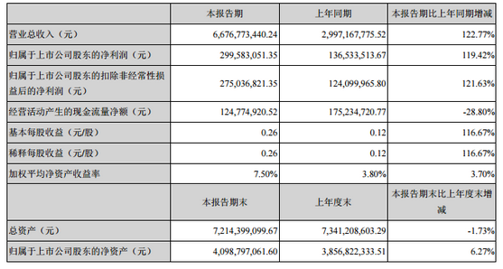 长信科技:上半年净利润3亿元 同比增长119.42%