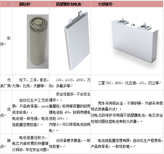 按照封装方式:通常分为软包、方形、圆柱(18650、21700等)三大类,每个大类中又可以分为各种不同尺寸的细分规格。这三种体系中,最成熟的型号是圆柱18650,能做到全自动化生产,一致性也最好。
