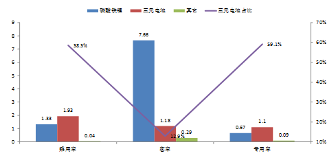 乘用车和专用车的三元电池渗透率将进一步提升。