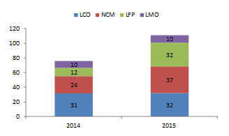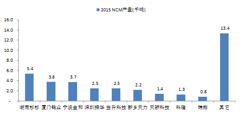 图10:2015年主要厂商NCM正极材料产量(千吨)