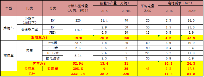 根据浙商新能源汽车系列深度报告之《遥望2020,谁执牛耳》,我们预测2020年中国市场新能源汽车销量可达220万辆(中性场景),以此测算出电池需求量届时将达到84.8GWh,对比2015年增长390%+。