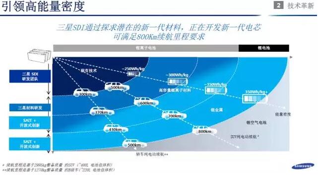 三星SDI株式会社副社长郑世雄介绍,三星SDI动力电池能量密度目前为250wh/kg,并预计在2023年达到350wh/kg的目标,届时,其可以实现电动汽车续航里程达800km。