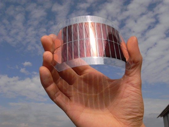 传统的无机光电器件(即太阳能电池)已经不是什么新鲜事物了,只是它必须加工成坚硬的板块状物件,才能大面积的吸收太阳能,而这明显限制了日常应用。而柔性器件重量轻,并且可以折叠、卷曲、粘贴在曲面上,如汽车玻璃、屋顶、衣服等。