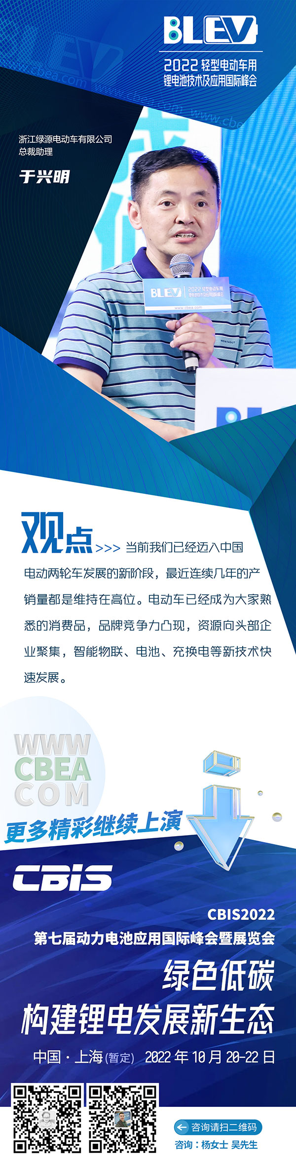 浙江绿源电动车有限公司总裁助理 于兴明: