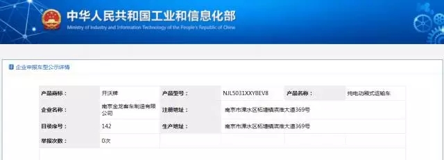 近日,中华人民共和国工业和信息化部发布了2017年第298批《道路机动车辆生产企业及产品公告》,配套了猛狮三元锂离子电池的南京金龙“开沃牌”纯电动厢式运输车NJL5031XXYBEV8和NJL5032XXYBEV8成功入选。