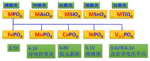 范未峰博士介绍,M代表前面所替代的铁、锰、钴、镍、铜、铬等任何一种金属元素,只要M是变价金属,且上述化合物结构稳定,具有锂离子扩散的通道即可作为锂电正极材料,但容量不同、电压不同、倍率性能不同、寿命不同……