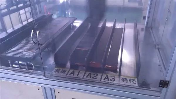 自动化的机器将每段打上镍带和绝缘耐高温的麦拉片(Mylar),下一步进行5个级别的称重,分别是偏重、A1、A2、A3、偏轻。这个跟CPU晶圆挑选一样,同一批切割工艺,也会出现不同体质,根据不同体质再分出对应容量,配对出货。