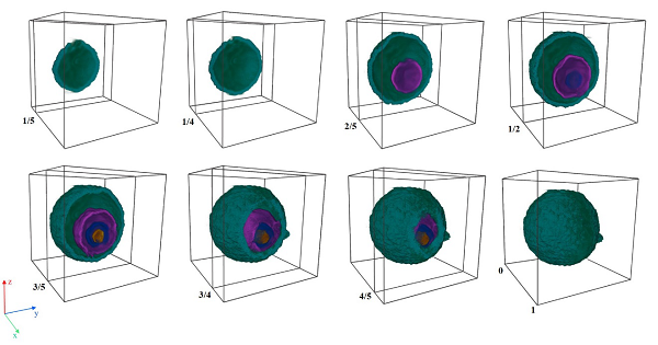 图3四层镍钴锰金属氧化物微球的三维重构效果图