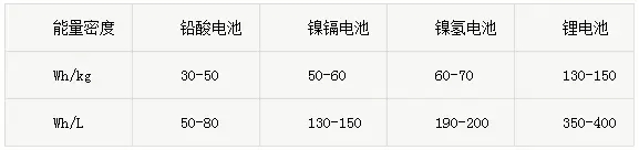 目前锂电池的能量密度是镍镉和镍氢电池的3和1.5倍,能量密度的高低是由材料密度与结构决定的。