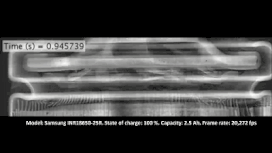 在整个测试过程中,作者发现电池的能量密度越高,则越容易发生爆炸。松下的电池容量达到3.4Ah,因此根据相关研究其在热失控中能够比其他几种电池(2.6Ah)多产生2L气体(2.5L/Ah)。为了分析电池的爆炸过程(0.01s)作者将X射线拍摄速度提高到了每秒20272张(视频9)。