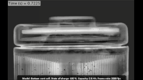 相关研究显示热失控一旦发生,热失控可能会在2s之内蔓延到整个18650电池,因此为了能够更好的观察整个热失控过程,需要每秒为18650电池拍摄1000张以上的X光照片,而电池的爆炸时间小于0.01s,这就需要更高的拍摄速度。为了满足这一苛刻的要求,Donal P. Finegan采用欧洲同步辐射实验室的设备对18650电池防爆阀的动作过程进行了拍摄,该设备曾经对保险丝的熔断起弧过程进行了拍摄,其分辨率达到了每秒钟百万次拍摄的级别。