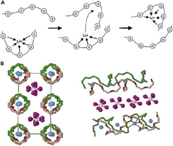 (B)SPE结晶相中的Li离子传导。