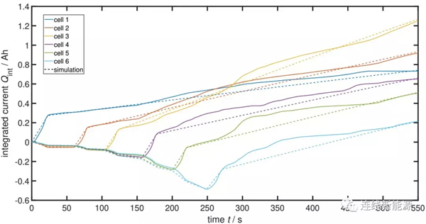 为了更好的分析针刺触发多并电池模组热扩散过程电流值变化,作者利用等效电路模型进行了模拟分析,并同实测结果进行了对比。